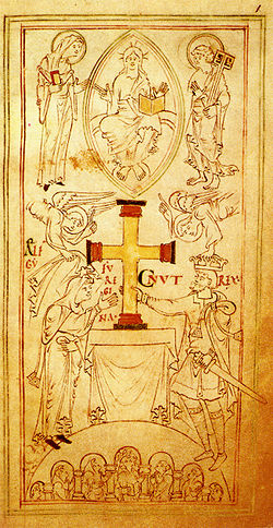 A 13th century portrait of Cnut the Great. It shows him as a king of Christendom.