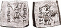 Coins were minted in the Achaemenid Empire, including the gold darics and silver sigloi. and with the Achemenid conquest of Gandhara under Darius the Great c. 520 BC, the practice spread to the Indo-Gangetic Plain. The coins of this period were called Puranas, Karshapanas or Pana. These earliest Indian coins, however, are unlike those circulated in Persia, which were derived from the Greek/Anatolian type; they not disk-shaped but rather stamped bars of metal, suggesting that the innovation of stamped currency was added to a pre-existing form of token currency which had already been present in the the Mahajanapada kingdoms of the Indian Iron Age. Mahajanapadas that minted their own coins included Gandhara, Kuntala, Kuru, Panchala, Shakya, Surasena and Surashtra.