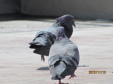 In general, the terms "dove" and "pigeon" are used somewhat interchangeably. In ornithological practice, "dove" tends to be used for smaller species and "pigeon" for larger ones, but this is in no way consistently applied, and historically, the common names for these birds involve a great deal of variation between the terms. The species most commonly referred to as "pigeon" is the Feral Rock Pigeon, common in many cities.