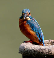 The Common Kingfisher or the European Kingfisher (Alcedo atthis), has a very wide distribution over Eurasia and Africa. This striking blue bird lives primarily besides water bodies.