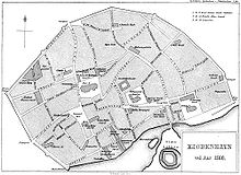 The British landed 30,000 men and surrounded Copenhagen. The attack continued for the next three days, killing some 2,000 civilians and destroying most of the city. The devastation was so great because Copenhagen relied on an old defence-line whose limited range could not reach the British ships and their longer-range artillery. Not until the 1850s were the ramparts of the city opened to allow new housing to be built around The Lakes ( Danish: Søerne) that bordered the old defences to the west. This dramatic increase of space was long overdue, because the old ramparts were out of date as a defence system, and because of bad sanitation in the old city. Before the opening, central Copenhagen was inhabited by approximately 125,000 people, peaking in the census of 1870 (140,000); today the figure is around 25,000. In 1901, Copenhagen expanded further, incorporating communities with 40,000 people, and in the process making Frederiksberg an enclave within Copenhagen.