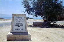 The world's lowest road, Highway 90, runs along the Israeli and West Bank shores of the Dead Sea at 393 m (1,289 ft) below sea level.