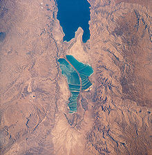 The Dead Sea (Arabic: البحر الميت al-Baḥr al-Mayyit, Hebrew: יָם הַמֶּלַח, Yām HaMélaḥ, "Sea of Salt", also Hebrew: יָם הַמָּוֶת, Yām HaMā́weṯ, "The Sea of Death"), also called the Salt Sea, is a salt lake bordering Jordan to the east and Israel and the West Bank to the west. Its surface and shores are 423 metres (1,388 ft) below sea level, Earth's lowest elevation on land. The Dead Sea is 377 m (1,237 ft) deep, the deepest hypersaline lake in the world. With 33.7% salinity, it is also one of the world's saltiest bodies of water, though Lake Assal (Djibouti), Garabogazköl and some hypersaline lakes of the McMurdo Dry Valleys in Antarctica (such as Don Juan Pond) have reported higher salinities. It is 8.6 times saltier than the ocean. This salinity makes for a harsh environment in which animals cannot flourish, hence its name. The Dead Sea is 55 kilometres (34 mi) long and 18 kilometres (11 mi) wide at its widest point. It lies in the Jordan Rift Valley, and its main tributary is the Jordan River.