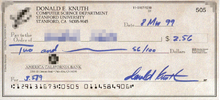 - He used to pay a finder’s fee of $2.56 for any typographical errors or mistakes discovered in his books, because "256 pennies is one hexadecimal dollar", and $0.32 for "valuable suggestions". According to an article in the Massachusetts Institute of Technology's Technology Review, these Knuth reward checks are "among computerdom's most prized trophies". Knuth had to stop sending real checks in 2008 due to bank fraud, and instead now gives each error finder a "certificate of deposit" from a publicly listed balance in his fictitious "Bank of San Serriffe".