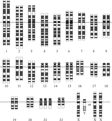 The extra chromosomal material can come about in several distinct ways. A typical human karyotype is designated as 46,XX or 46,XY, indicating 46 chromosomes with an XX arrangement typical of females and 46 chromosomes with an XY arrangement typical of males. In 1–2% of the observed Down syndromes. Some of the cells in the body are normal and other cells have trisomy 21, this is called mosaic Down syndrome (46,XX/47,XX,+21).