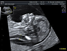 Ultrasound imaging can be used to screen for Down syndrome. Increased fetal nuchal translucency (NT) is an indicator of increased risk of Down syndrome. A 2003 systematic review of 30 studies of NT in Down syndrome found an average sensitivity of 75-80% with a false positive rate of 5.8-6% (95% confidence intervals). Therefore, while the false positive rate is too high for NT to be used alone as a screening test, it is useful as part of a combined test. Ultrasound measurement of NT is usually performed between 11 and 14 weeks gestation.