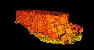 • Red scoria from Puna Pau, a very light red stone used for the pukao and a few moai.