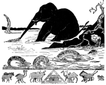 Several cultural references emphasise the elephant's size and exotic uniqueness. For instance, a " white elephant" is a byword for something expensive, useless and bizarre. The expression " elephant in the room" refers to an obvious truth that is ignored or otherwise unaddressed. The story of the blind men and an elephant teaches that reality may be viewed by different perspectives.