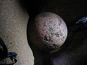 In materials science, erosion is the recession of surfaces by repeated localized mechanical trauma as, for example, by suspended abrasive particles within a moving fluid. Erosion can also occur from non-abrasive fluid mixtures. Cavitation is one example.