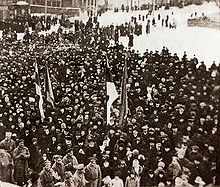 Following the Bolshevik takeover of power in Russia after the October Revolution of 1917 and German victories against the Russian army, between the Russian Red Army's retreat and the arrival of advancing German troops, the Committee of Elders of the Maapäev issued the Estonian Declaration of Independence in Pärnu on 23 February and in Tallinn on 24 February 1918.