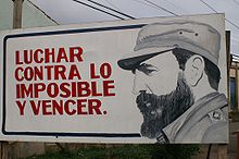 Cuban propaganda poster proclaiming a quote from Castro: "Luchar contra lo imposible y vencer" ("Fight against the impossible and win")