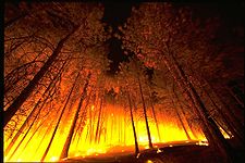 Fire is the heat and light energy released during a chemical reaction, in particular a combustion reaction. Depending on the substances alight, and any impurities within, the colour of the flame and the fire's intensity might vary.