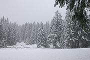 Temperate needleleaf forests mostly occupy the higher latitude regions of the northern hemisphere, as well as high altitude zones and some warm temperate areas, especially on nutrient-poor or otherwise unfavourable soils. These forests are composed entirely, or nearly so, of coniferous species ( Coniferophyta). In the Northern Hemisphere pines Pinus, spruces Picea, larches Larix, silver firs Abies, Douglas firs Pseudotsuga and hemlocks Tsuga, make up the canopy, but other taxa are also important. In the southern hemisphere most coniferous trees, members of the Araucariaceae and Podocarpaceae, occur in mixtures with broadleaf species that are classed as broadleaf and mixed forests.