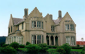 "Castlamore", Lovelock Avenue, Dunedin, designed by F. W. Petre. This Gothic house merely hints at a castle theme, and has none of the Gothic gloom and sobriety of the small lancet windows and turrets generally associated with the style.