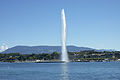 Geneva - Top left: Palace of Nations, Middle left: ATLAS experiment at CERN, Right: Jet d'Eau, Bottom: View over Geneva and the lake.