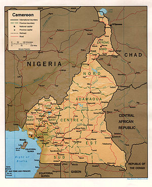 border countries: Central African Republic 797 km, Chad 1,094 km, Republic of the Congo 523 km, Equatorial Guinea 189 km, Gabon 298 km, Nigeria 1,690 km
