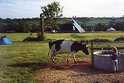 After the huge number of tents left behind in 2007 and when one of Michael Eavis's cows died after ingesting a metal tentpeg left in the soil, the Festival devised its Love the Farm, Leave No Trace campaign which gently pushed revellers to respect the environment and clear up after themselves. The Festival had always pushed a green agenda and new initiatives in 2008 included biodegradable tent pegs handed out free to all campers and biotractors running on waste vegetable oil. These new efforts were rewarded with The Greener Festival Award for 2008 alongside a number of other festivals also committed to environmentally friendly music festivals.