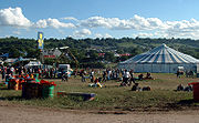 This year saw the introduction of a new field adjacent to the Sacred space and Park Stage. Not named by the organisers, the festival goers themselves called it "Flagtopia" in reference to the flags located there. "Flagtopia" is higher than the Sacred space and offers better views of the festival. The sunny weather throughout Saturday and Sunday dried up the Friday mud and helped to reduce problems.