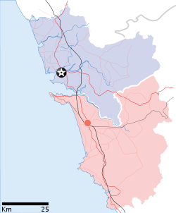 The North Goa District is further divided into four subdivisions – Panaji, Bicholim, Mapusa and Ponda; and six taluks – Tiswadi ( Panaji), Bardez ( Mapusa), Pernem, Bicholim, Sattari ( Valpoi), and Ponda.