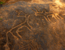 Goa's history goes back to 20,000–30,000 years. The rock art engravings exhibit earliest traces of human life in India. Upper Paleolithic or Mesolithic rock art engravings have been found on the bank of river Kushavati at Usgalimal. Petroglyphs, cones, stone-axe, and choppers dating back 10,000 years back have been found in many places in Goa like Kazur, Mauxim, and the Mandovi- Zuari basin. Palaeolithic cave existence is seen at Dabolim, Adkon, Shigao, Fatorpa, Arli, Maulinguinim, Diwar, Sanguem, Pilerne, and Aquem-Margaon etc. Difficulty in carbon dating the laterite rock compounds poses problems in determination of exact time period. These discoveries have shed light on Goa's prehistory. Its ancient name was "Revti Dweep".