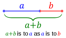 In mathematics and the arts, two quantities are in the golden ratio if the ratio of the sum of the quantities to the larger quantity is equal to the ratio of the larger quantity to the smaller one. The figure on the right illustrates the geometric relationship. Expressed algebraically: