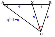 \tfrac{|AB|}{|BC|}=\tfrac{|AC|}{|AB|}=\phi
