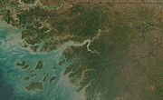 At 36,125 square kilometres (13,948 sq mi), Guinea-Bissau is larger in size than Taiwan, Belgium, or the U.S. state of Maryland. This small, tropical country lies at a low altitude; its highest point is 300 metres (984 ft). The interior is savanna, and the coastline is plain with swamps of Guinean mangroves. Its monsoon-like rainy season alternates with periods of hot, dry harmattan winds blowing from the Sahara. The Bijagos Archipelago extends out to sea.