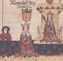 The Kingdom of Scotland was united under the descendants of Kenneth MacAlpin, first king of a united Scotland. His descendants, known to modern historians as the House of Alpin, fought amongst each other during frequent disputed successions. The last Alpin king, Malcolm II, died without issue in the early 11th century and the kingdom passed through his daughter's son, Duncan I, who started a new line of kings known to modern historians as the House of Dunkeld or Canmore. The last Dunkeld king, Alexander III, died in 1286 leaving only a single infant granddaughter as heir; four years later, Margaret, Maid of Norway herself died in a tragic shipwreck en route to Scotland. England, under Edward I, would take advantage of the questioned succession in Scotland to launch a series of conquests into Scotland. The resulting Wars of Scottish Independence were fought in the late 13th and early 14th centuries as Scotland passed back and forth between the House of Balliol and the House of Bruce. Scotland's ultimate victory in the Wars of Independence under David II confirmed Scotland as a fully independent and sovereign kingdom. When David II died without issue, his nephew Robert II established the House of Stuart, which would rule Scotland uncontested for the next three centuries. James VI, Stuart king of Scotland, would also inherit the throne of England in 1567, and the Stuart kings and queens would rule both independent kingdoms until the Act of Union in 1707 merged the two kingdoms into a new state, the Kingdom of Great Britain. Queen Anne was the last Stuart monarch, ruling until 1714. Since 1714, the succession of the British monarchs of the houses of Hanover and Saxe-Coburg and Gotha (Windsor) has been due to their descent from James VI and I of the House of Stuart.