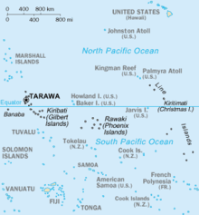 The climate is equatorial, with little rainfall and intense sunshine. Temperatures are moderated somewhat by a constant wind from the east. The terrain is low-lying and sandy: a coral island surrounded by a narrow fringing reef with a slightly raised central area. The highest point is about six meters above sea level.