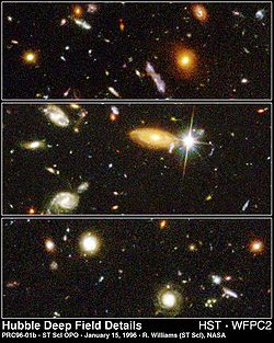 Retrieved from " http://en.wikipedia.org/w/index.php?title=Hubble_Deep_Field&oldid=205615418"