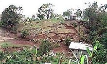 Though there are no recorded amounts, satellite-derived rainfall estimates show up to 39 inches (990 mm) of rain falling in the mountainous terrain of the countries. This heavy rainfall resulted in mudslides and flooding, killing a total of 589 people across the island and leaving more than 350.000 homeless.