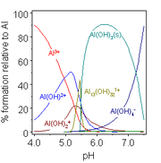 In mildly acidic solutions the hydroxo complexes formed by aluminium are somewhat different from those of boron, reflecting the greater size of Al(III) vs. B(III). The concentration of the species [Al13(OH)32]7+ is very dependent on the total aluminium concentration. Various other hydroxo complexes are found in crystalline compounds. Perhaps the most important is the basic hydroxide, AlO(OH), a polymeric material known by the names of the mineral forms boehmite or diaspore, depending on crystal structure. Gallium hydroxide, indium hydroxide and thallium(III) hydroxides are also amphoteric. Thallium(I) hydroxide is a strong base.