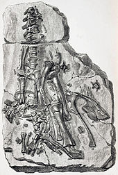 Iguanodon bernissartensis fossil drawn as it was found in 1882