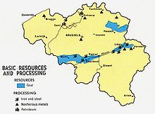 Wallonia's Sillon industriel (the blue area in the north is not in Wallonia)