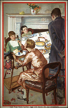 Poster promoting Irish Free State farm goods for breakfast to Canadians ("Irish Free State Butter, Eggs and Bacon for our Breakfasts").