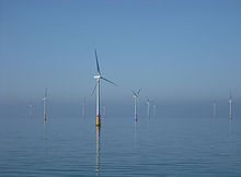 An offshore wind farm was developed on the Arklow Bank, Arklow Bank Wind Park, about 10 km off the coast of County Wicklow in the south Irish Sea. The site currently has seven GE 3.6 MW turbines, each with 104 m diameter rotors, the world's first commercial application of offshore wind turbines over three megawatts in size. The operating company, Airtricity, has indefinite plans for nearly 100 further turbines on the site.