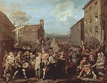 March of the Guards to Finchley (1750), William Hogarth's satirical depiction of troops mustered to defend London from the 1745 Jacobite rebellion.
