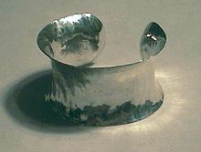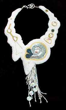 Native American jewellery is the personal adornment, often in the forms of necklaces, earrings, bracelets, rings, pins, brooches, labrets, and more, made by the Indigenous peoples of the United States. Native American jewellery reflects the cultural diversity and history of its makers. Native American tribes continue to develop distinct aesthetics rooted in their personal artistic visions and cultural traditions. Artists create jewellery for adornment, ceremonies, and trade. Lois Sherr Dubin writes, "[i]n the absence of written languages, adornment became an important element of Indian [Native American] communication, conveying many levels of information." Later, jewellery and personal adornment "...signaled resistance to assimilation. It remains a major statement of tribal and individual identity."