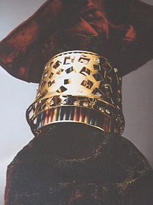 Jewellery in the Indus Valley was worn predominantly by females, who wore numerous clay or shell bracelets on their wrists. They were often shaped like doughnuts and painted black. Over time, clay bangles were discarded for more durable ones. In present-day India, bangles are made out of metal or glass. Other pieces that women frequently wore were thin bands of gold that would be worn on the forehead, earrings, primitive brooches, chokers, and gold rings. Although women wore jewellery the most, some men in the Indus Valley wore beads. Small beads were often crafted to be placed in men and women’s hair. The beads were about one millimetre long.