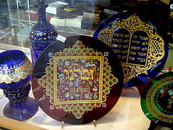 Glass platter inscribed with the Hebrew word zokhreinu - remember us