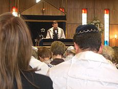 • The pulpit, or amud, a lectern facing the Ark where the hazzan or prayer leader stands while praying.