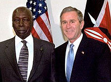 The election held in 1988 saw the advent of the mlolongo (queuing) system, where voters were supposed to line up behind their favoured candidates instead of a secret ballot. This was seen as the climax of a very undemocratic regime and it led to widespread agitation for constitutional reform. Several contentious clauses, including one that allowed for only one political party were changed in the following years. In democratic, multiparty elections in 1992 and 1997, Daniel arap Moi won re-election. In 2002, Moi was constitutionally barred from running, and Mwai Kǐbakǐ, running for the opposition coalition "National Rainbow Coalition" — NARC, was elected President. Anderson (2003) reports the elections were judged free and fair by local and international observers, and seemed to mark a turning point in Kenya's democratic evolution.