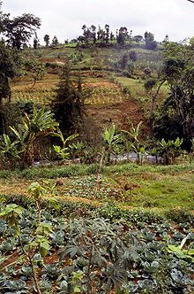 Agriculture is the second largest contributor to Kenya's gross domestic product (GDP), after the service sector. In 2005 agriculture, including forestry and fishing, accounted for about 24 percent of GDP, as well as for 18 percent of wage employment and 50 percent of revenue from exports. The principal cash crops are tea, horticultural produce, and coffee; horticultural produce and tea are the main growth sectors and the two most valuable of all of Kenya's exports. The production of major food staples such as corn is subject to sharp weather-related fluctuations. Production downturns periodically necessitate food aid—for example, in 2004 aid for 1.8 million people because of one of Kenya's intermittent droughts. Tea, coffee, sisal, pyrethrum, corn, and wheat are grown in the fertile highlands, one of the most successful agricultural production regions in Africa. Livestock predominates in the semi-arid savanna to the north and east. Coconuts, pineapples, cashew nuts, cotton, sugarcane, sisal, and corn are grown in the lower-lying areas.