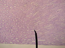 Renal histology studies the structure of the kidney as viewed under a microscope. Various distinct cell types occur in the kidney, including:
