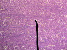 The pathologist will examine the specimen using light microscopy with multiple staining techniques (hematoxylin and eosin/H&E, PAS, trichrome, silver stain) on multiple level sections. Multiple immunofluorescence stains are performed to evaluate for antibody, protein and complement deposition. Finally, ultrastructural examination is performed with electron microscopy and may reveal the presence of electron-dense deposits or other characteristic abnormalities which may suggest an etiology for the patient's renal disease.