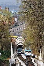 One more unusual mode of public transportation Kiev has is the funicular, that climbs up the steep right bank of the Dnieper River. It transports 10,000–15,000 passengers daily.