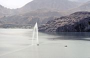 Several researchers independently proposed the installation of degassing columns from rafts in the lake. The principle is simple: a pump lifts water from the bottom of the lake, heavily saturated with CO2, until the loss of pressure begins releasing the gas from the diphasic fluid and thus makes the process self-powered. In 1992 at Monoun, and in 1995 at Nyos, a French team demonstrated the feasibility of this approach. In 2001, the US Office of Foreign Disaster Assistance funded a permanent installation at Nyos.