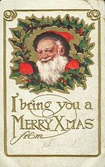 "Xmas" used on a Christmas postcard (1910)