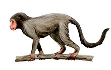 A reconstruction of Aegyptopithecus, a primate predating the split between the human and Old World monkey lineages in human evolution