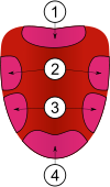 An incorrect map of the tongue showing zones which taste bitter (1), sour (2), salty (3) and sweet (4). In reality, all zones can sense all tastes.